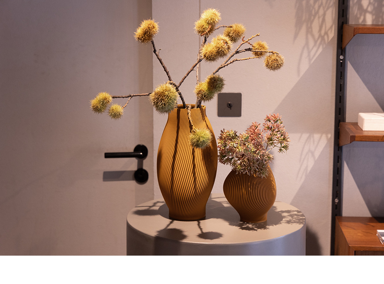 Sie habe nichts gegen Üppigkeit, aber die Mischung müsse stimmen. «Wenn alles nur fein und aufgelöst ist, verliert sich die Wirkung.» Es brauche Ruhe und Kontrast. Veronika Tsukamoto konnte schon als Filialleiterin des Ginkgos ihren Stil einfliessen lassen. Seit sie das Geschäft besitzt, setzt sie ihn kompromissloser um. Mit Freiräumen schafft sie Bühnen für einzelne Blumen oder spezielle Objekte. Letztere haben meistens etwas mit den Blumen zu tun: wie die Blumentragtaschen aus Leder, die verschiedenen Blumenscheren, die Vasen aus dem 3D-Drucker …